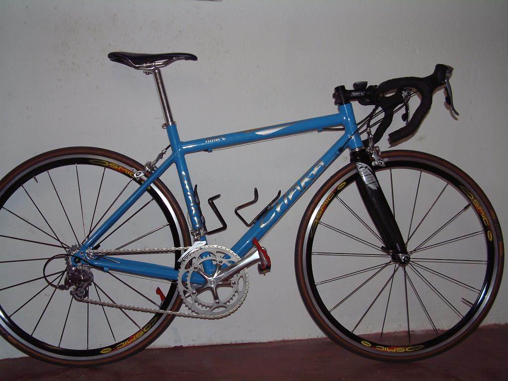 So, das ist mein Renner - aber Pedalen sind jetzt die "look keo" und die Gabel ist ne Easton Ec 90 SLX - fand die Smolik zwar schöner aber die easton ist leichter und fährt sich nicht so brutal hart.