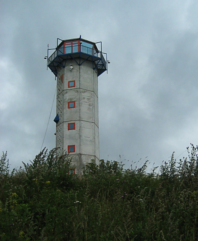 Wenn man eine auf dem Photo erkennbare Besonderheit des Turms und das entsprechende Bundesland vergoogelt, springen Name, Standort und Höhe schon auf der ersten Ergebnisseite ins Auge.
