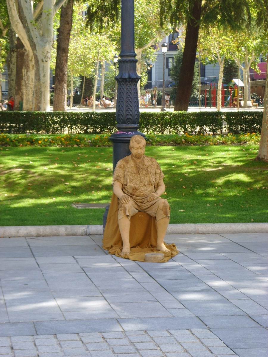 ) gehangelt um die Flüssigkeitsaufnahme zu gewährleisten, als sich die Stadt anzuschauen, die am Sonntag ähnlich lebendig wie ein uckermärkisches Dorf erscheint aber der absolute Höhepunkt: ein Rennradler ( schwarzes Trikot!!! ), der mir in der flimmernden Mittagsglut auf einer dieser kleinen, verkehrsberuhigten Ausfallstraßen Madrids ( wer brauch' schon ÖPNV, wenn man doch Autos hat