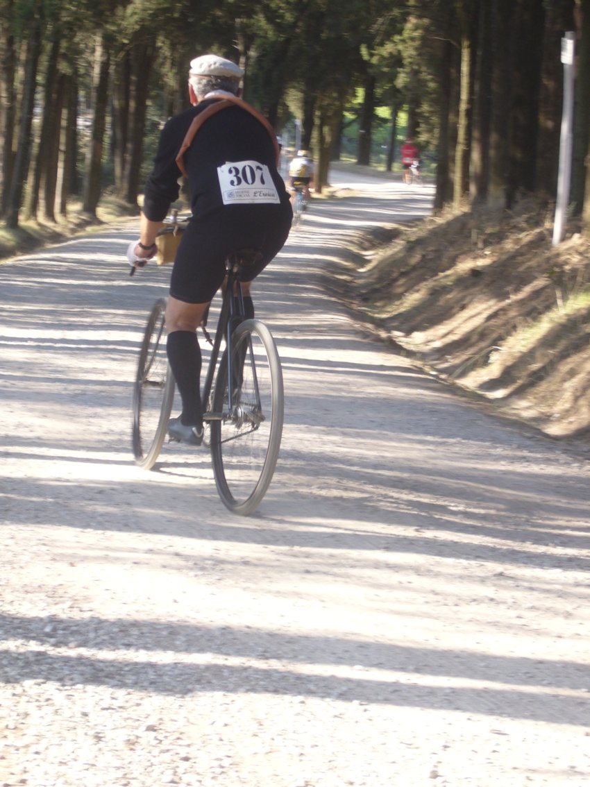 Am Sonntag, dem 4. 10. fand die diesjährige (13. Ausgabe) der Eroica statt, einer mehr oder weniger touristischen Fahrt durch die Toskana, zum Teil über die sog. „strade bianchi“, ungeteerte Kieß- und Schotterstraßen.