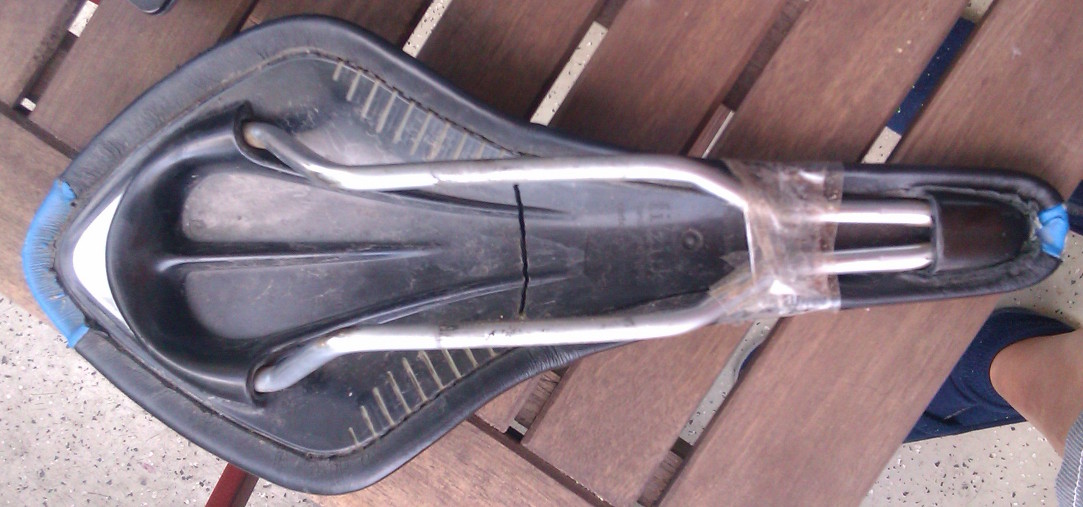 Das komisch federnde Gefühl auf der Rückfahrt ins Ziel kam nicht von ungefähr... Beim Sturz hat es den Sattel zerlegt. Der war aber vermutlich schon angeschlagen und ein Ersatzteil lag schon bereit.