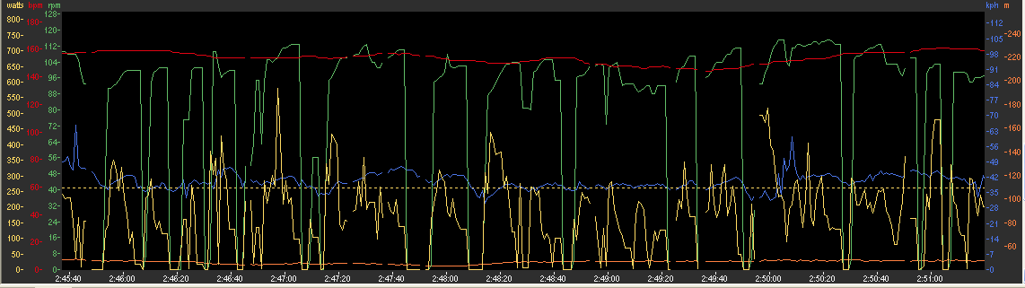 15 Minuten vor dem Ende. Die Leistung ist nicht mehr besonders hoch, aber schön auffällig ist die Heterogenität der Leistungsverteilung. Kurven gibt es hier übrigens kaum welche.