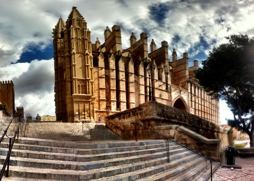 Es ging in die Altstadt nach Palma zur Kathedrale. Dort wollten wir uns den Weißen Rauch anschauen. Stattdessen grinste ich über beide Backen, als wir innerhalb kürzester Zeit von schwarzen Wolken klatschnass bepiselt worden.