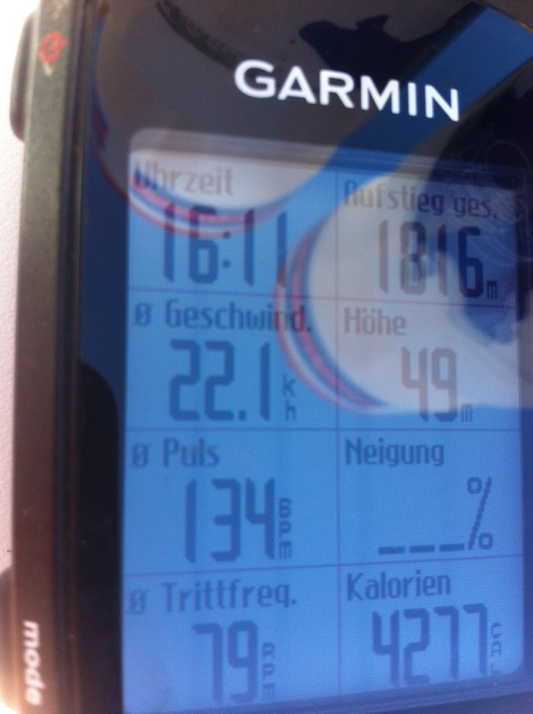 Wir trafen in einer trockenen Phase in einem der 11 Cappuccinos einen ehemaligen Teamkameraden und ich hörte die Erfolgsstories zum zehnten Male (Niedersachsenmeister im 4erMannschaftszeitfahren über 100 km ) anhören. Ich konterte mit SaCalobra