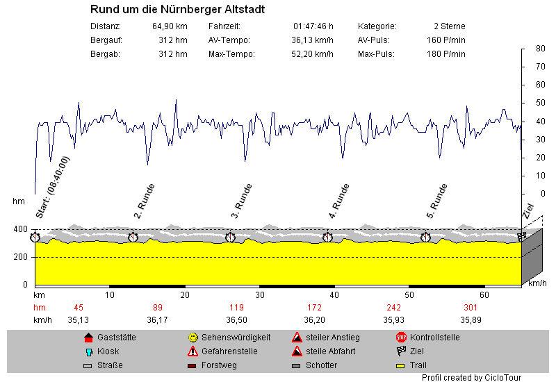 Gestern und heute war ich in Nürnberg unterwegs. Das Jedermannrennen ging über 5 Runden a 12,9km /65hm.