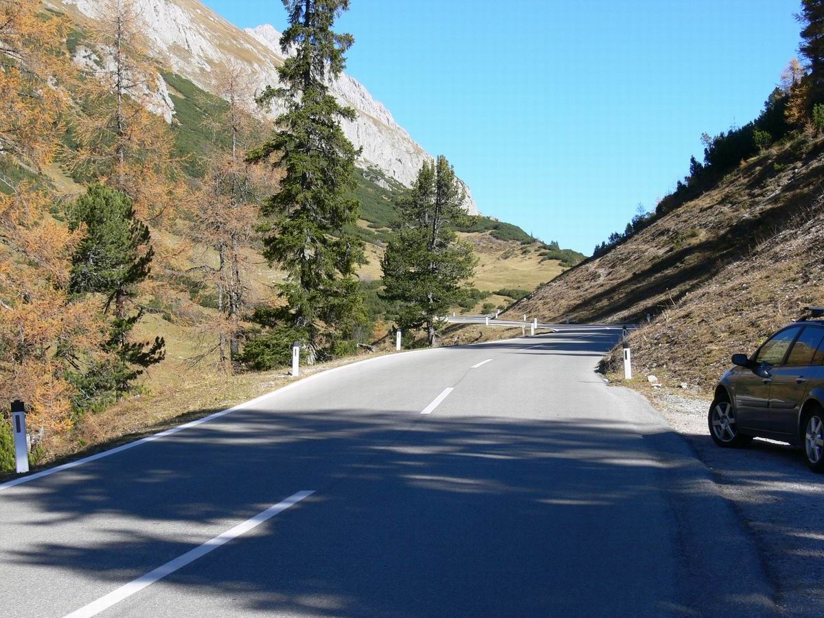 Die Tour beginnt mit einem relativ flach, die Straße steigt bis Bichlbach fast unmerklich mit ca. 3% an, ideal zum Warmfahren. Danach geht es dann aber gleich zur Sache, man biegt ins Namloser Tal ab. Bis Berwang sind ca. 350 hm zu überwinden, durchschnittlich bei 7.5%. Danach geht es zwar ständig auf und ab, aber es ist nie so richtig steil. So kann man die Fahrt durch dieses fast unberührte Tal so richtig genießen. Der Autoverkehr hielt sich in der Nebensaison auch sehr in Grenzen. Man war also fast allein mit sich und der gransiosen Bergkulisse.