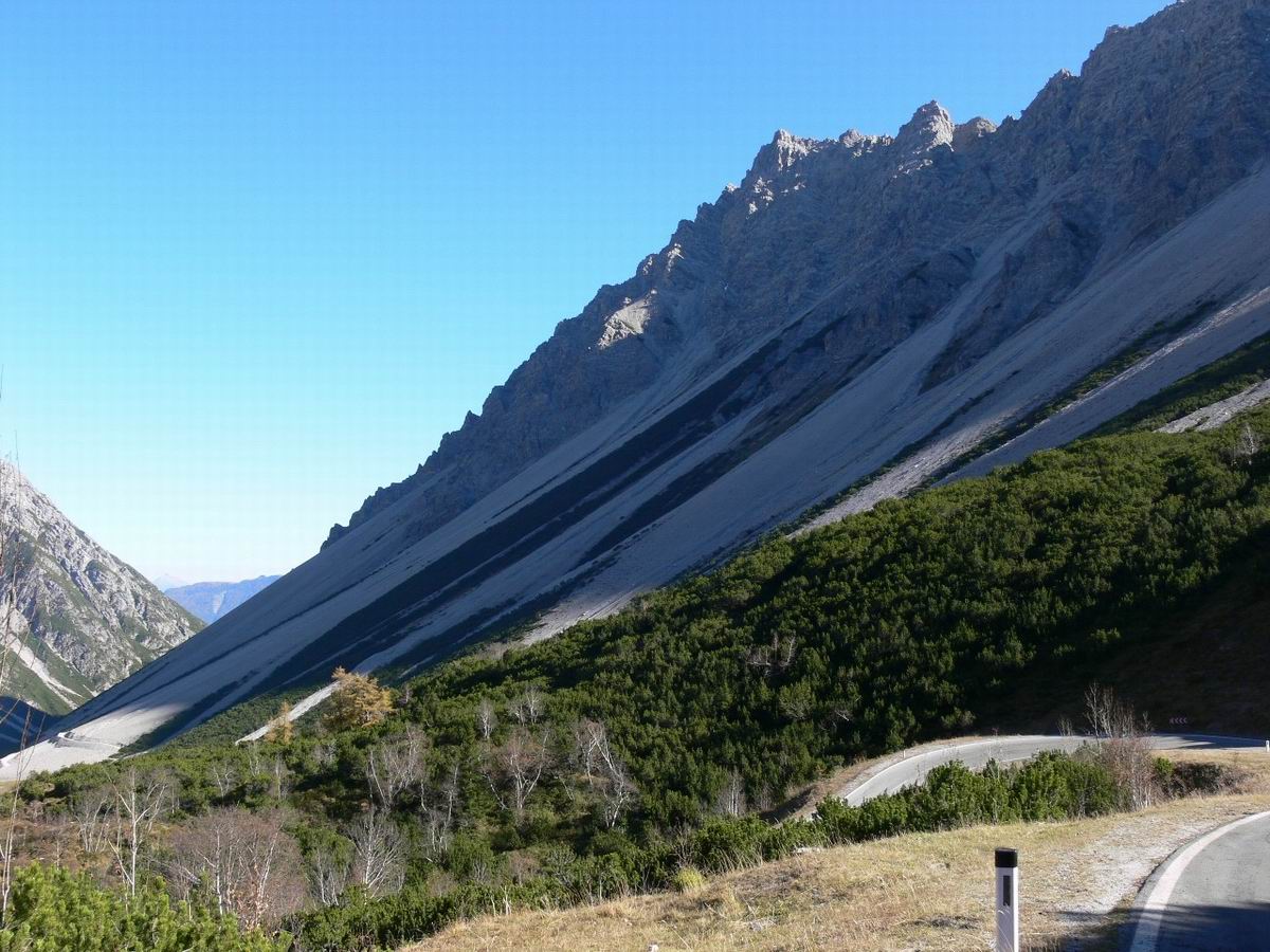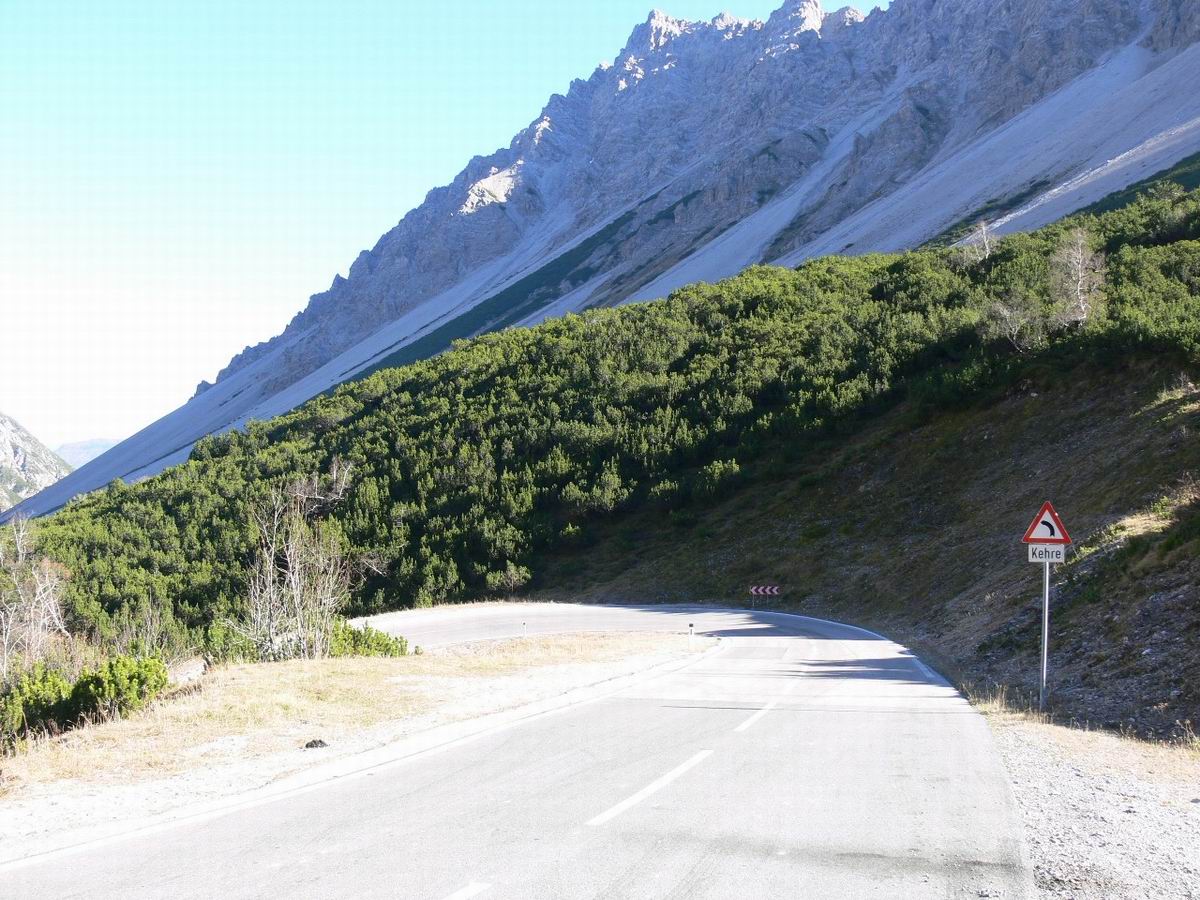 Die erste rasande Abfahrt gibt es dann runter nach Stanzach, man ist dann wieder auf ca. 900 m. Kurz danach erreicht man Elmen. Hier biegt man links ab, und sofort türmt sich eine ziemlich steile Rampe auf. Laut der Beschreibung von Rudolf Geser sollen es 18% sein, auf 1 km, aber laut Edge sind es im Durchschnitt ca. 12%. So oder so sieht es ziemlich beeindruckend aus, und man gewinnt ziemlich schnell an Höhe. Hat man diese Stelle erst mal überwunden, geht es für einige km wieder gemütlicher zur Sache. Die Straße ist mit ein paar Ausnahmen fast flach. Der eigentliche Anstieg beginnt dann in Boden. Hier wird es dann richtig steil, die Serpentinen sind sehr eng und fast übereinander gebaut. Das ist meine Lieblingspassage. Danach folgen längere gerade Abschnitte, die nicht unbedingt flacher sind, es geht aber gut voran und so erreicht man ziemlich die unspektakuläre Passhöhe. Hier ist in derTat nicht viel los, die Aussicht ist schön, aber nichts besonderes. Ein paar Autotouristen schießen die obligatorischen "ich war da"-Fotos und fahren weiter. Umso spekakulärer ist dann die Abfahrt nach Imst. Auf der rechten Seite die riesigen Murenfelder und links der Abgrund. Hier kann man richtig schön runterrollen, da es kaum Kurven gibt. Schnell ist Imst erreicht. Hier ist dann der romantische Teil der Tour beendet. Denn nun bewegt man sich auf stark befahrenen Bundesstraßen. Gerade der Fernpass ist eigentlich nicht zu empfehlen. Die Straße ist sehr eng und der LKW-Verkehr dort ist unerträglich. Der Pass an scih ist gut zu fahren, 5% im Schnitt. Hat man die Passhöhe erreicht, geht es nur noch bergab in den Start- und Zielort Lermoos.