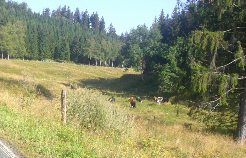 Zorge war erreicht und nun begann das Bergfeeling im Harz. Der erste km war ordentlich bis 10% Steigung bestückt, dann wurde es aber behaglich mit 5-7% bis hoch zum Nullpunkt, dem 2. Stop. Entlang an einem Tal der Superlative schlängelt sich die Starsse am linken Bergesrand empor. Die Sonne schien, der Blick ging weit nach oben, ein sattes grün der Bergwiesen und zufriedene Kühe waren zu bestaunen. Auf der Strasse vor einem sah man einen Lindwurm an Radfahrern sich dem Nullpunkt nähern. Falcon und ich setzten uns von unsrer Gruppe an die Spitze und drückten quietschfidel unsere Bikes diesen Traumpass empor. Und dann kamen sie, die Ameisenberge. Haufen waren es nicht, aber imposant, was die kleinen Tierschen so erbauen können. Interessant war allerdings auch, dass ich der einzige war, der diese Hochhäuser gesehen hatte. Waren etwa alle anderen schon am Anschlag?