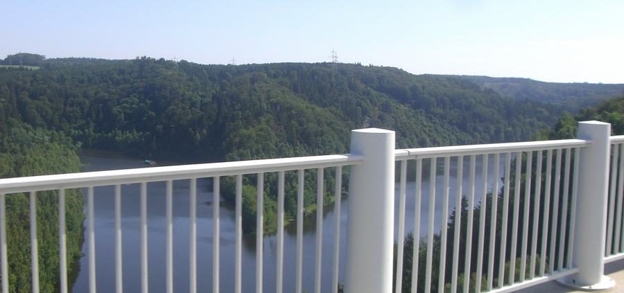 Dann kam Hasselfelde und das Drama nahm Winnis Anlauf. Wir erfuhren es erst an dem 3. Stop nach der Rappbodetalsperre, ein Ungeheuer an Stausee. Die junge Marathonfrau sagte ganz aufgeregt, dass unser Sportskamerad einen Platten hatte. Ich schaute mich irritiert um und erkannte nur Falcon in der Gruppe, also musste es Winni gewesen sein. Falcon hat ihn gleich angerufen und berichtete mir dann, das er das Dichtspray angewandt hatte, aber das Zeugs aus dem Loch wieder rausquoll. Damit war die Tour für Winni beendet. Ich hätte drei Schläuche für ihn parat gehabt, aber er hatte die falschen LRS drauf. Ich sagte den Labestellenbesetzern Bescheid und wir setzten die Fahrt dezimiert fort. Die Gruppe hatte diesmla nicht gewartet und so mussten Falcon und ich allein die 14km bis Drei Annen Hohne bestreiten. Falcon hat das Tempo gemacht und ich bin da ein wenig über meine Verhältnisse gefahren: 3% mit 23km/h und 5%-Steigung zum Schluss mit 17km/h. Jedenfalls sprach ich das Leid meiner Oberschenkel schon in diesem Streckenabschnitt aus. Falcon meinet nur trocken: Naja, ein wenig merke ich die auch... .
