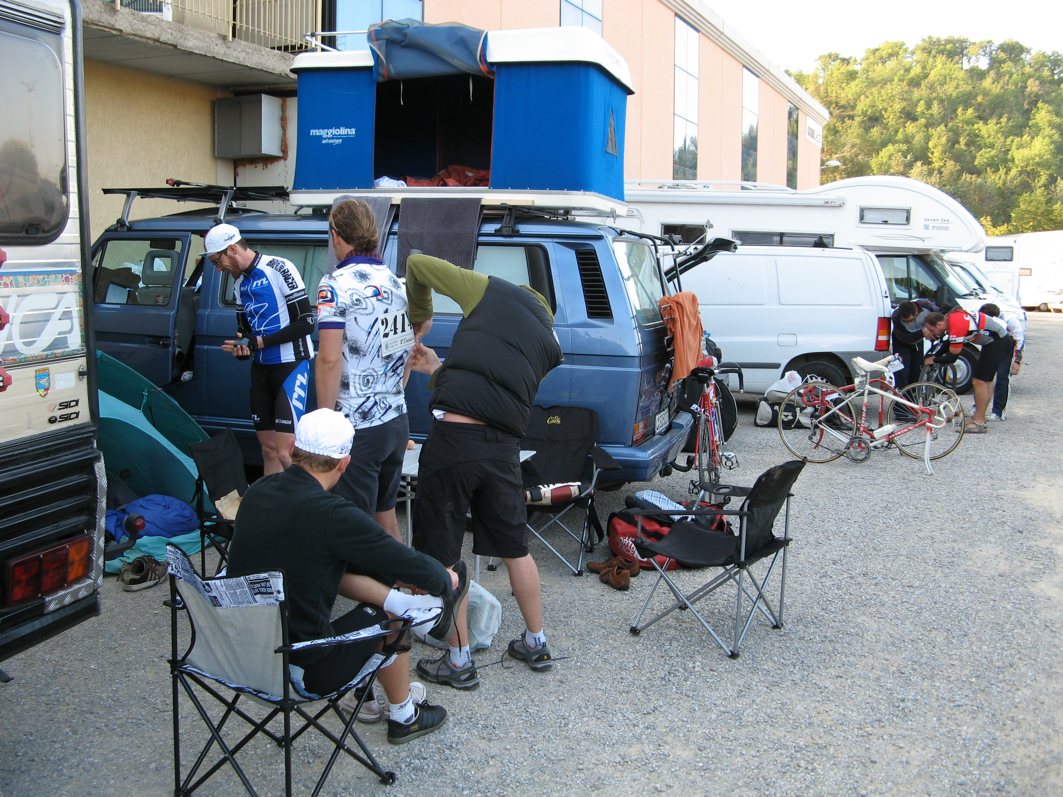 Dort trafen bis neun Uhr abends (wir saßen schon in der Trattoria) noch Fahrer der 205er Strecke ein!