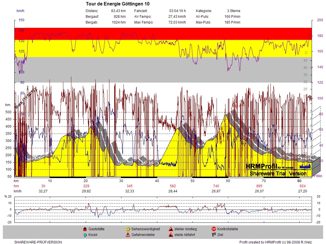 Bis zum Huckel nach Mengershausen habe ich mich gequält und wollte auch eigentlich, ja wirklich, diesen schönen Hügel hochschießen, aber alles am Körper sagte einfach NÖ. Eindrucksvolle Beweismittel habe ich hinzugefügt und alles, was hinter mir fuhr, überholte mich gnadenlos und so manch ein Teamkamerad erkannte mich und schrie vergnügt nach mir. Am HRMProfile sieht man ganz gut, dass ich mich dennoch hier völlig abgeschossen habe, was sich dann am Bramwald noch furchtbarer rächen sollte.....