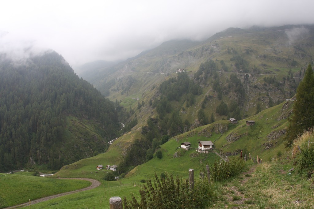 Wir verlassen die Autobahn, gleich ist Meran erreicht und dann werden wir auch schon in Schenna sein. Kurz im Hotel einchecken, umziehen und dann aufs Rad. Von Schenna zum Fuss des Timmelsjoch sind es knapp 24 Kilometer. Der Abschnitt steht bei mir im Kopf unter dem Titel „Warmfahren“. Das ich später dort schon richtig ins Schwitzen kommen werde, dass weiss ich ja jetzt noch nicht. Meine Gedanken kreisen viel mehr um das Wetter. Die Vorhersage war nicht so ganz eindeutig, rede ich mir noch immer mehr ein, als es realistisch zu sehen. „Gewitter sind immer wieder möglich“. Das schien mir doch noch immer besser als die für morgen: „Ständiger Regen“. Möglich heisst ja nicht „garantiert“. In diesem Moment betätigt meine Schwester die Scheibenwischer, es regnet in Strömen. Danke.