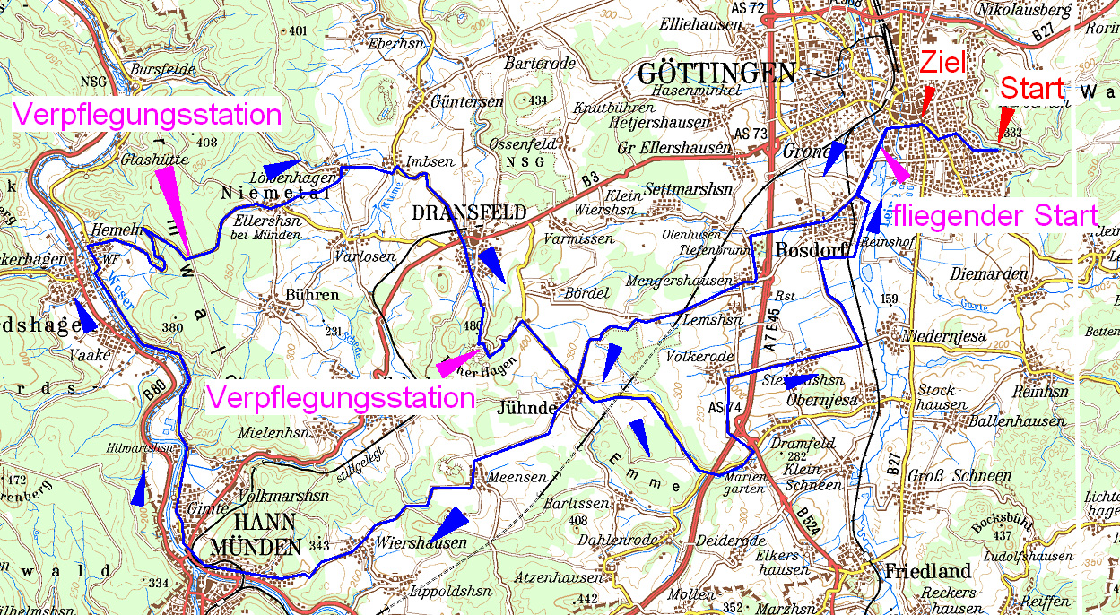 btw (nur mal so): Die 80km sind auch für mäßig trainierte Menschen schaffbar. Das sind wir hier ja nun alle nicht und die Mindestgeschwindigkeit beträgt 20km/h. Für ein Hefeweizen in Hemeln an der Fähre (wunderschön ist es dort bei schönem Wetter und das Grundnahrungsmittel kostet da unter 2€) ist da dann immer noch Zeit und Platz