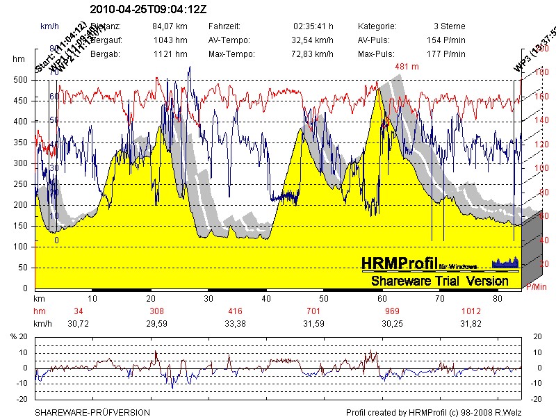 Der Start verlief im Gegensatz zum letzten Jahr im Schneckentempo, da alle Blöcke aufeinander auffahren durften, da ging erst mal gar nichts. Ich kam diemal aus einen Block weiter hinten aus C (obwohl ich bei der Anmeldung meinen Schnitt sogar noch leicht angehoben hatte...). Also hatte ich das ganze Rennen meine Aufgabe: eine Aufholjagd nach vorn. Im leichten Anstieg nach Jühnde grüßte ich erst Floeri in die Kamera, dann etwas später rief ich Winni und Sebastian aufmunternde Worte zu. Ansonsten konnte ich bis Meensen schon mal viele Plätze gut machen. Nach der Abfahrt ins Werratal kam Blechreder in Sicht und meine aufmunternden Worte konnten ihn leider nur kurz antreiben. Dann konnte ich eine kleiner Gruppe erwischen, die ganz gut funktionierte und bis zum Brahmwald hatten wir eine größere Gruppe vor uns eingeholt. Im Anstieg wieder voll Gas gegeben und auch hier konnte ich ordentlich viele Plätze gut machen. Meine Beine fühlten sich sehr gut an (auch dank des Trainings vor einer Woche im Vogtland!!!). Allerdings war mein Magen das limitierende Element. So bin ich eben so schnell weitergefahren, dass mein Mageninhalt gerade so drin blieb. Oben angekommen hatte ich nicht das Glück wie Sippe einen ahnungslosen Zuschauer ausrauben zu können. Also musste ich kurz anhalten, Becher greifen und schnell weiter, denn ich war etwas übermütig mit nur einer Trinkflasche gestartet. Das nächste Teilstück war ziemlich eklig: welliges Terrain mit viel Gegenwind. Da hieß es nur Augen zu und durch denn so was ist nicht gerade meine Stärke. Da war ich ehrlich gesagt schon froh, als der Hohe Hagen anfing. Dort weiter Plätze gut gemacht, aber es war schon viel mühsamer. Den Schum dort noch eingeholt (damit hatte ich nicht wirklich gerechnet) und ihn ein paar nette aufmunternde Worte ins Gesicht geschrien