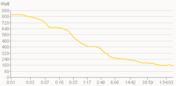 Das zweite Bild zeigt die maximale Durchschnittsleistung pro Zeitintervall. (z.B. 800W über 3s, oder 400W über 2 Minuten)
