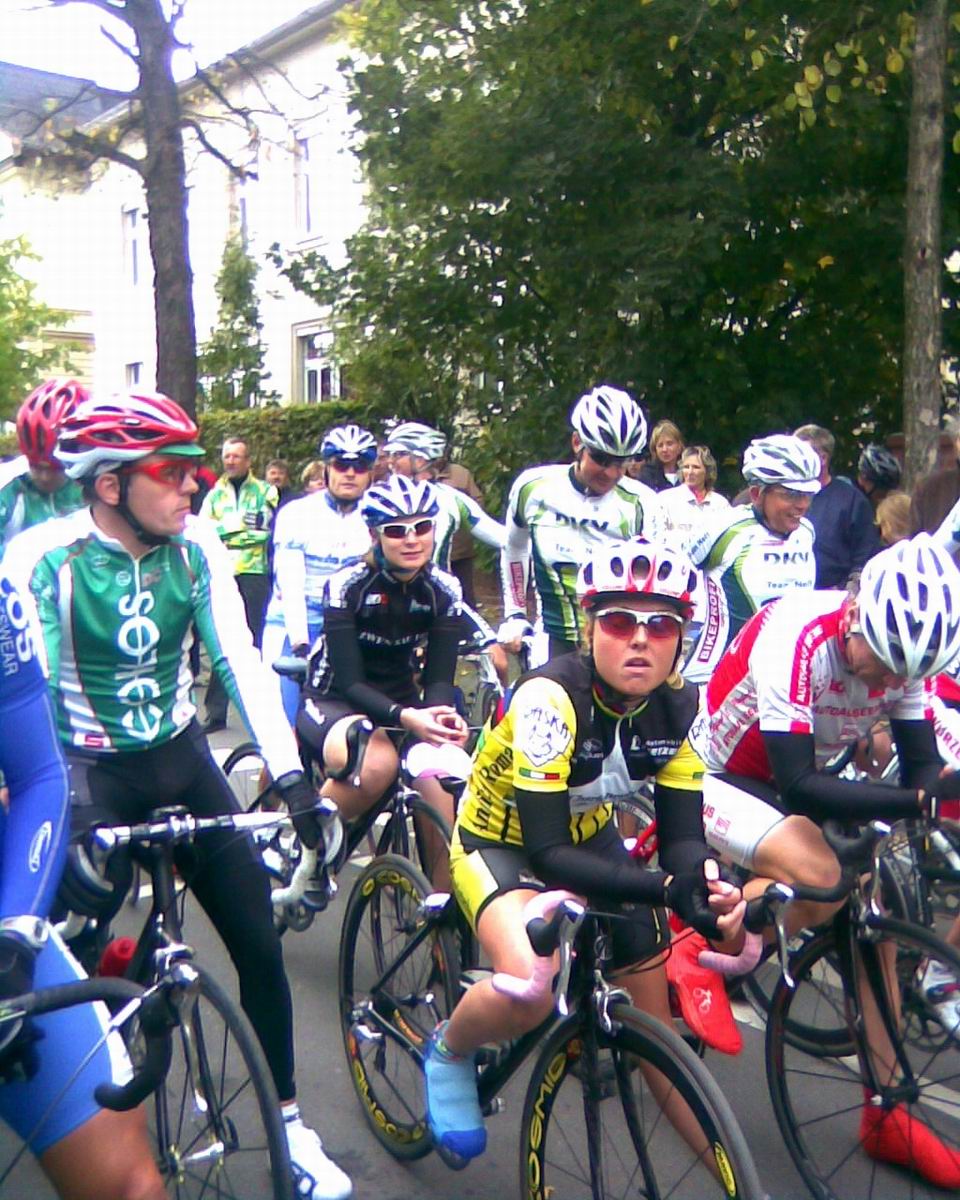 Chrissi hatte es schwer, Damen die schon internationale Rundfahrten bestritten haben aus Berlin, da war nichts zu holen. Trotzdem gute Leistung, bei dem Sturm bergauf als Gegenwind.