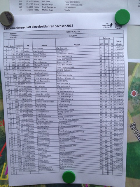 Ergebnisliste vom Hobbyrennen (mit Dank an HE):