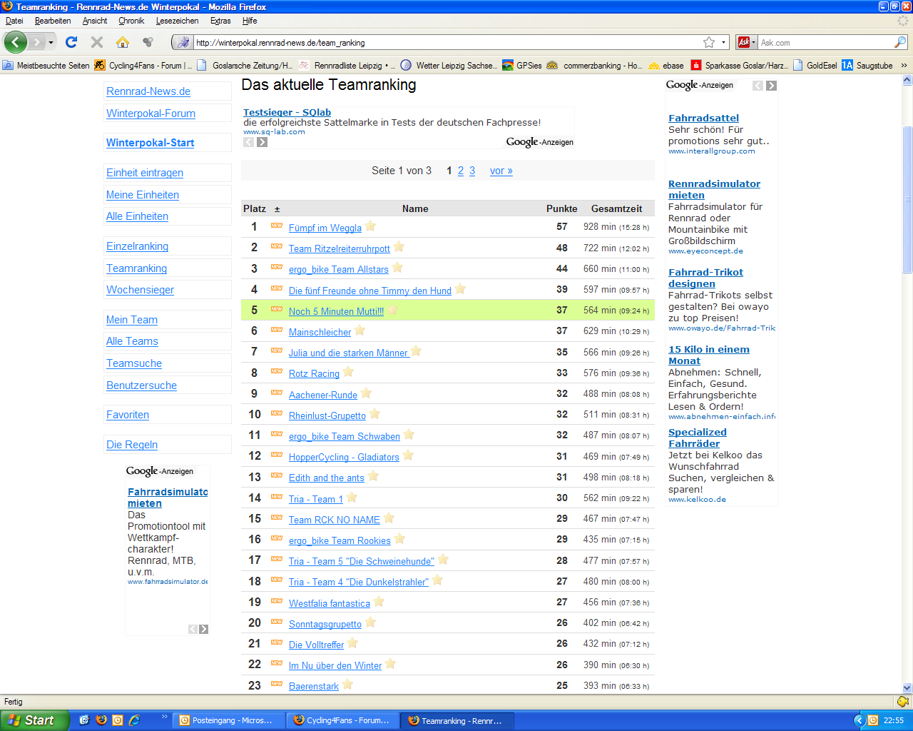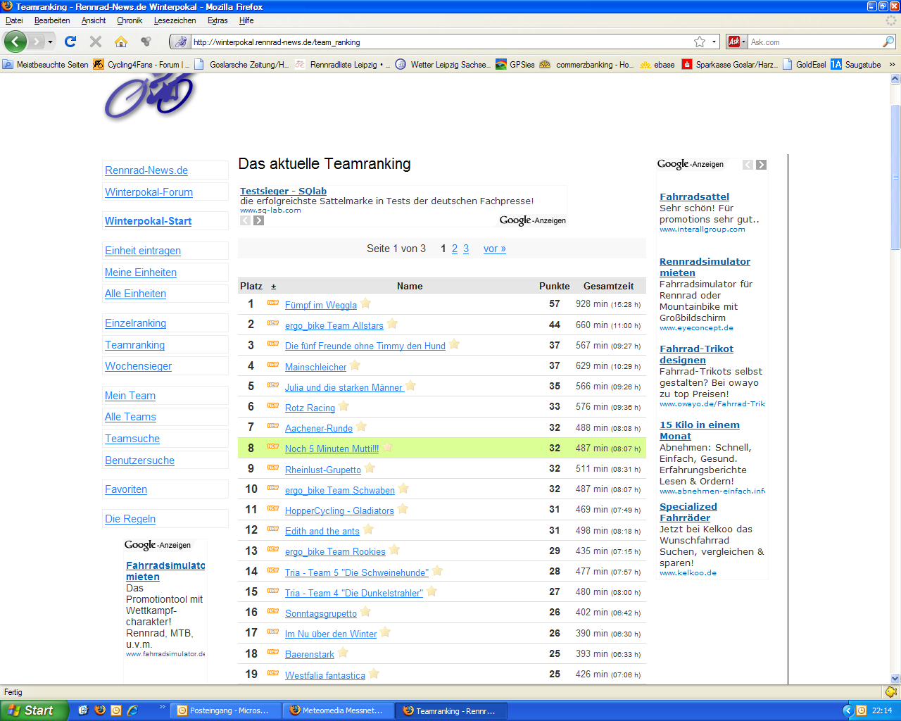 In was für einem Rythmus wird denn die Winterpokalseite aktualisiert? Bin von meiner ersten Punktejagt überhaupt wieder zurück. Und es waren teuer erkaufte Punkte...