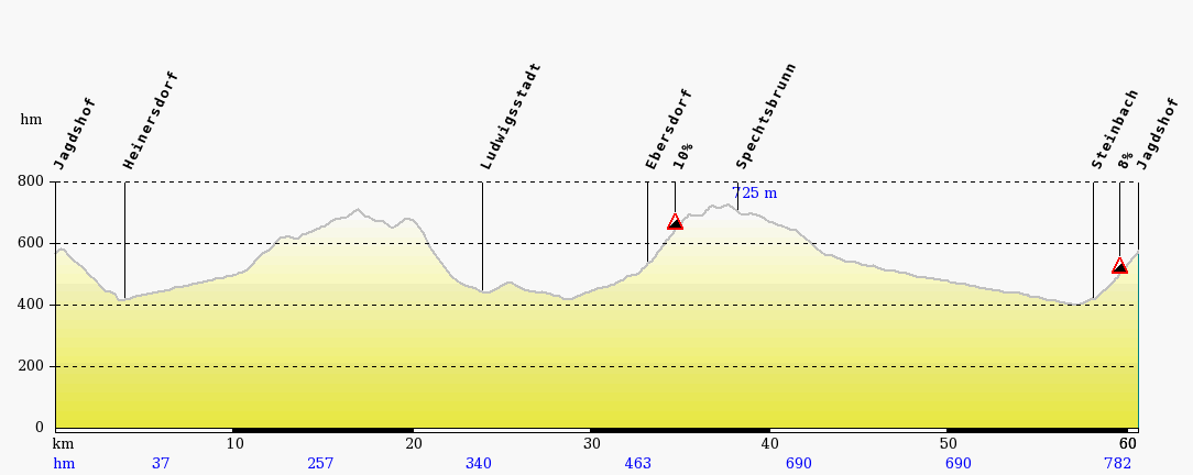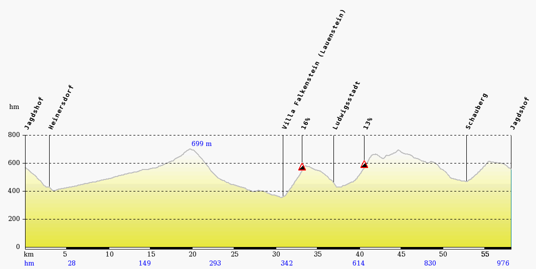 Dabei die von mir gefürchteten Anstiege an der Villa Falkenstein in Lauenstein vorbei (mit max. 15%) und von Ludwigsstadt Richtung Steinbach am Wald (max 13%) gefahren.