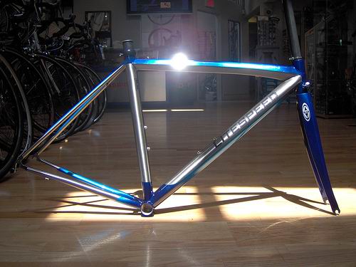 Der hat ja eine ganz schlimme Slopinggeometrie, die auf dem Bild gar nicht so auffällt. Die Rohre sind so fett, als dass sie auch aus Alu sein könnten.