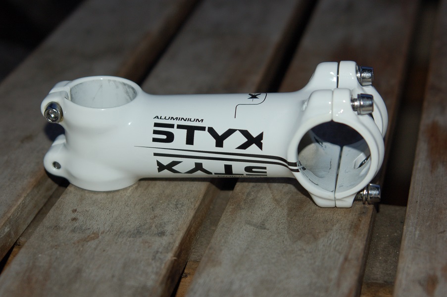 [/attachment]Styx Alu Vorbau, weiß, 100 mm, 31,8, 7 Grad (flipflop) Gewicht 135 g (nachgewogen), Von Neurad abmontiert nach ausgiebiger Probefahrt, hat daher leichte Montagespuren innen und auch leichte Spuren außen. 15,- Euro