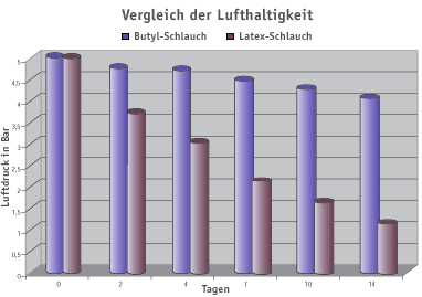 Der Nachteil liegt in der geringen Lufthaltigkeit. Bei einem Reifen mit Latex-Schlauch muss der Luftdruck vor jeder Ausfahrt neu eingestellt werden. Deswegen sind Latex-Schläuche für den Alltagsgebrauch wenig geeignet.