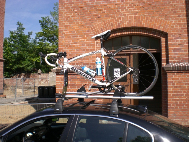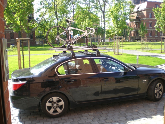 für BMW Limo Dachträger als Grundträger plus 1 Träger für Rennrad und 1 Halterung für Tourenrad oder MTB.