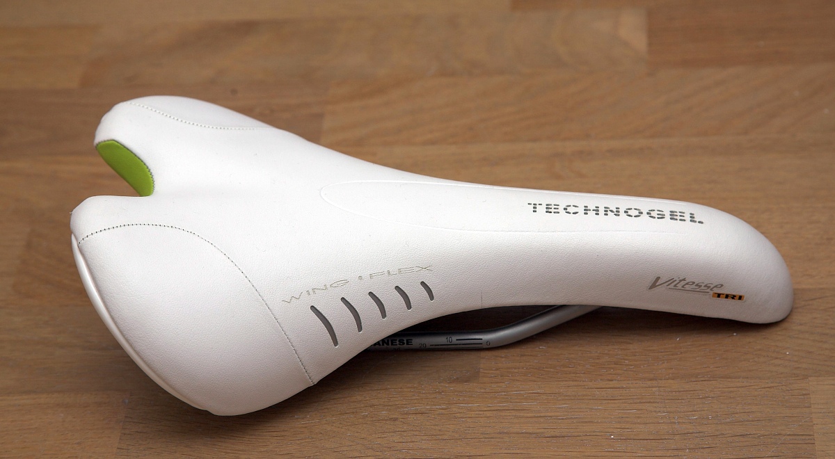 FIZIK Damen ZF/Tria-Sattel Vitesse Tri mit Manganese hollow rail-Gestell. Das Gestell ist für einen vorn kurzen Sattelüberhang gestaltet (UCI-Regeln!) und die Sattelnase ist bis in die Spitze mit "Technogel" weich gepolstert.