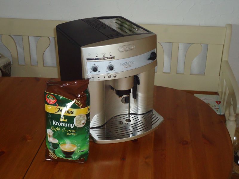 Als Preis habe ich mir 40 Euro vorgestellt. Dazu gibt es noch ein Kilo Jacobs Kaffe Crema Bohnen. Kostet alleine 15 Euro.