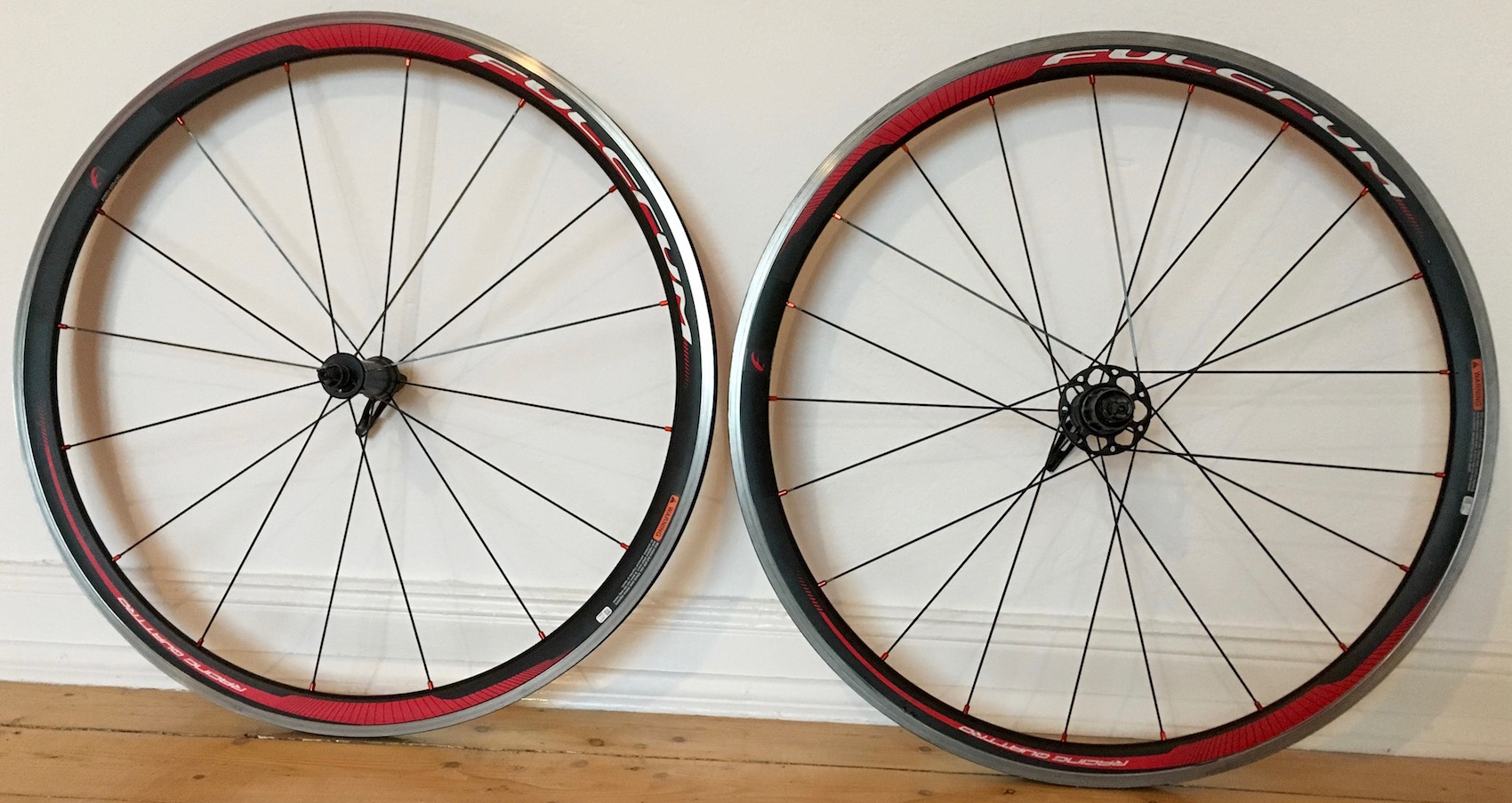 Satz Fulcrum Racing Quattro incl. Schnellspanner. Stammt vom Komplettrad aus 2014/15. Mit roten Speichennippeln.