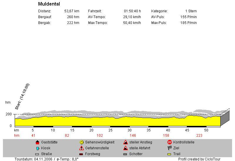 Letztendlich waren es 57 km mit einem Schnitt, mit dem ich bei den NSC gerade so dem Besenwagen entkommen wäre, ja am Ende der Saison ist man schon ein bisschen ausgelaugt