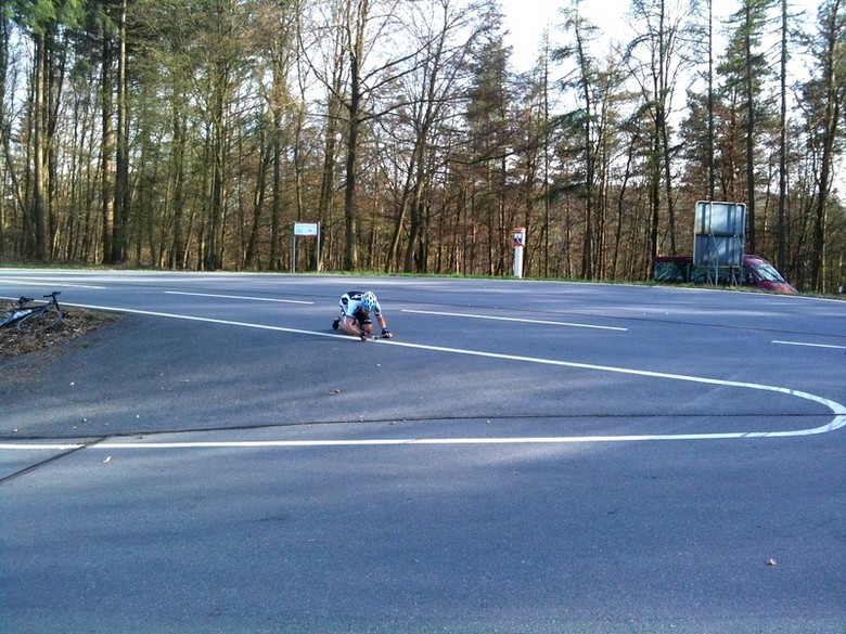 2 Hügel à 300 hm standen im Programm und Bach 2 km Anfahrt ging es in den ersten rein. Ich gewann den ortseingangssprint (ok, war auch superklugundüberraschend Ala Floeri gemacht). Die drei gingen dann "etwas" schärfer in die ~ 4% Strecke rein, so dass ich nach 1 km kollabierte und mich bis zum Gipfel alleine erholen konnte. Aber 34 km/h waren dann doch ne andere Liga für mich. 20 grad machten dann auch schnell den floeri zum nassen Wesen und ich war über den Gegenwind froh.