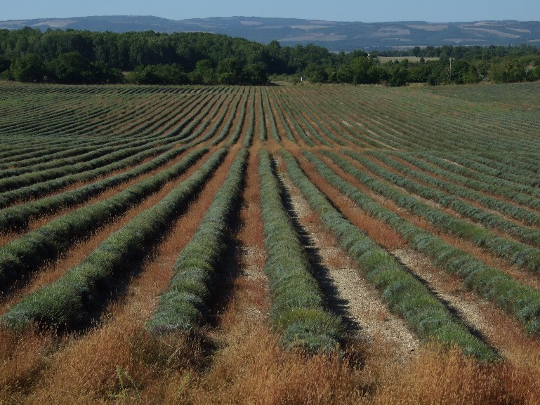 Die ersten Kilometer fahre ich auch einer Hochfläche und oft sehe ich die typischen Lavendelfelder, die leider schon abgeerntet sind. Aber ein gewisser Rest von dem Duft hängt noch in der Luft.