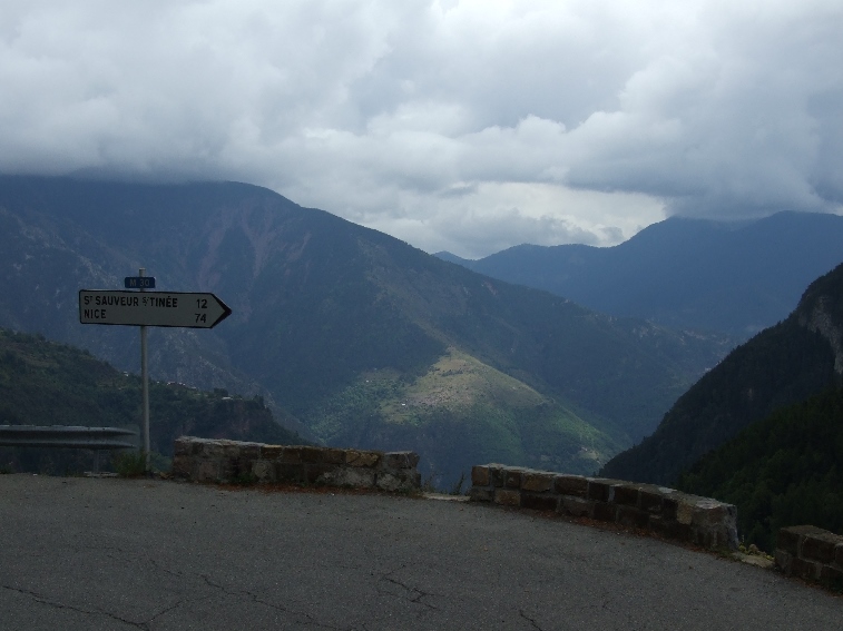 Unten im Tal der Var angekommen fahre ich flussabwärts und biege bei Guillaume in das Tal des Tuebi. Hier fahre ich noch bis in das merkwürdige Dorf Péone und beschließe aufgrund aufziehender dunkler Wolken, hier für heute Schluss zu machen. Eine gute Entscheidung, denn es fängt auch gleich an zu Regnen.