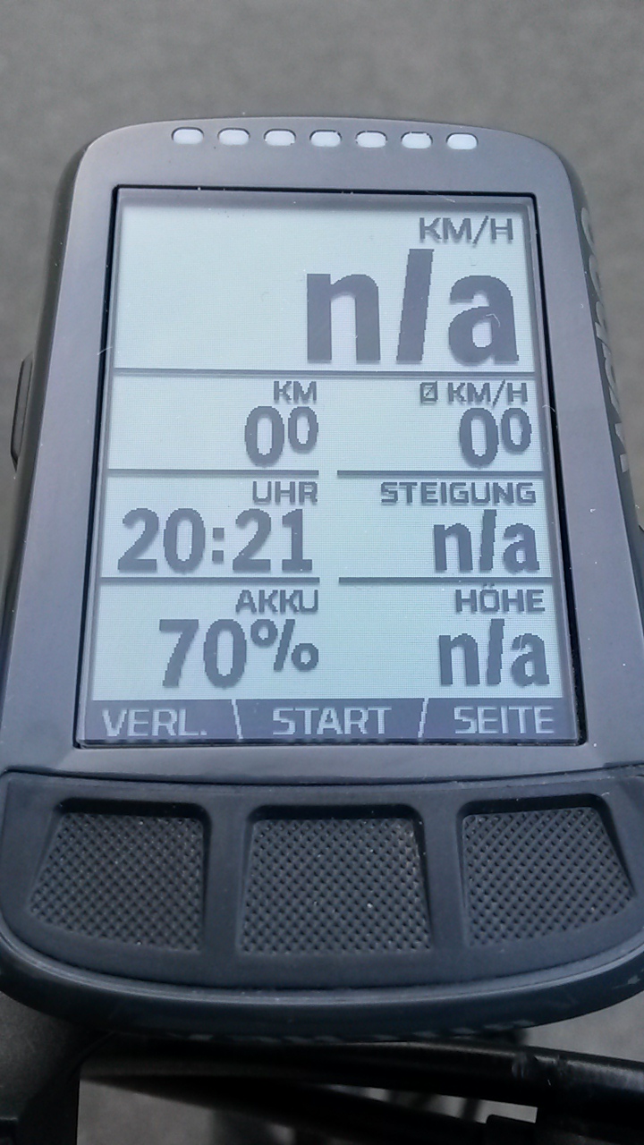 Bisher auffällig: bei Regenfahrten sammelt sich etwas Wasser und hoch gewirbelter Schmutz in den Vertiefungen der Gummi-Tasten unter dem Display (siehe Bilder). Bin gespannt, ob hier eine Schwachstelle ist, was die Dichtigkeit angeht. Aber: einmal pusten und alles ist weg!