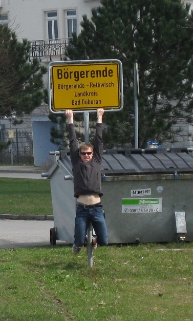 Hinter Krakow kündigte sich eine Vollsperrung der von uns geplanten Strecke an. Tapfer und unbeeindruckt fuhren wir trotzdem weiter und wollten uns die "Schikane" bei Kölln mal anschauen. Moment mal: "Kölln", dachte ich noch bei mir - irgendwas stimmt hier nicht! Das Autorouting am Edge war allerdings nicht schuld und das Flüsschen, dass wir kurze Zeit später überquerten war zum Glück nicht der Rhein. Hinter Güstrow wurde das Gelände welliger und der Himmel verdunkelte sich bedrohlich. Bei Mistorf schafften wir es nicht mehr dem Regen zu entkommen und stellten uns nach kurzer "Dusche" an einer Bushaltestelle unter. Unglücklicher Weise waren die Klamotten feucht und nach dem Regenguss war es merklich kühler. Die sanften Wellen vor Bad Doberan taten ihr übriges und ich war nach 350km völlig grau! Die Abfahrten und Ebenen konnten im Fettverbrennungs-Modus noch in der gewohnten Geschwindigkeit um die 40km/h bewältigt werden aber in jeder Welle bin ich gestorben und hätte völlig kraftlos absteigen können. Bei einem Ampelstopp in Bad Doberan holte ich die letzten 3 Traubenzuckertäfelchen aus der Tasche. Das hätte ich schon eher machen sollen, denn die letzten Kilometer fielen mir wieder leichter, wohl auch weil das Ziel schon in greifbarer Nähe war. Unterm Strich waren wir um die 13h unterwegs. Davon 10:40h und 368km auf dem Rad.