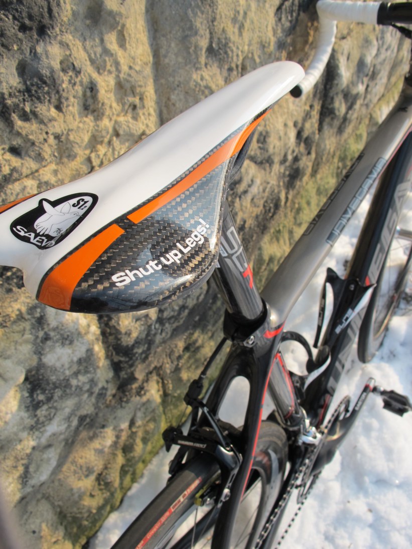 A-propos bremsen: ich würde den Lenker doch noch einen Hauch nach oben rotieren. Mit schweissnassen Händen und ohne Lenkerband hätte ich sonst Sorge, bei stärkerem Bremseinsatz vom Basislenker nach vorn abzurutschen. Auch die S-Bend-Auflieger fallen nach vorn hin ein wenig ab, so dass Deine Handgelenke in Aero-Haltung ziemlich überstreckt sein dürften, was wiederum der Kraftschlinge nicht so gut tut.Barus hat geschrieben:Die vordere Bremse ist nur Zierde?