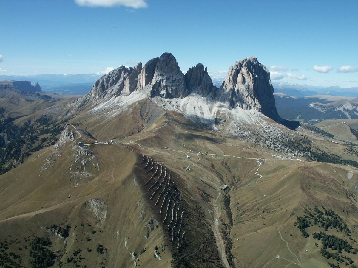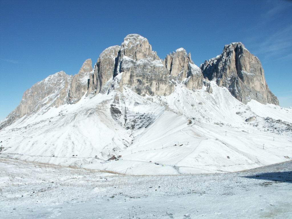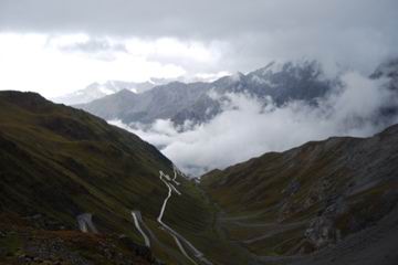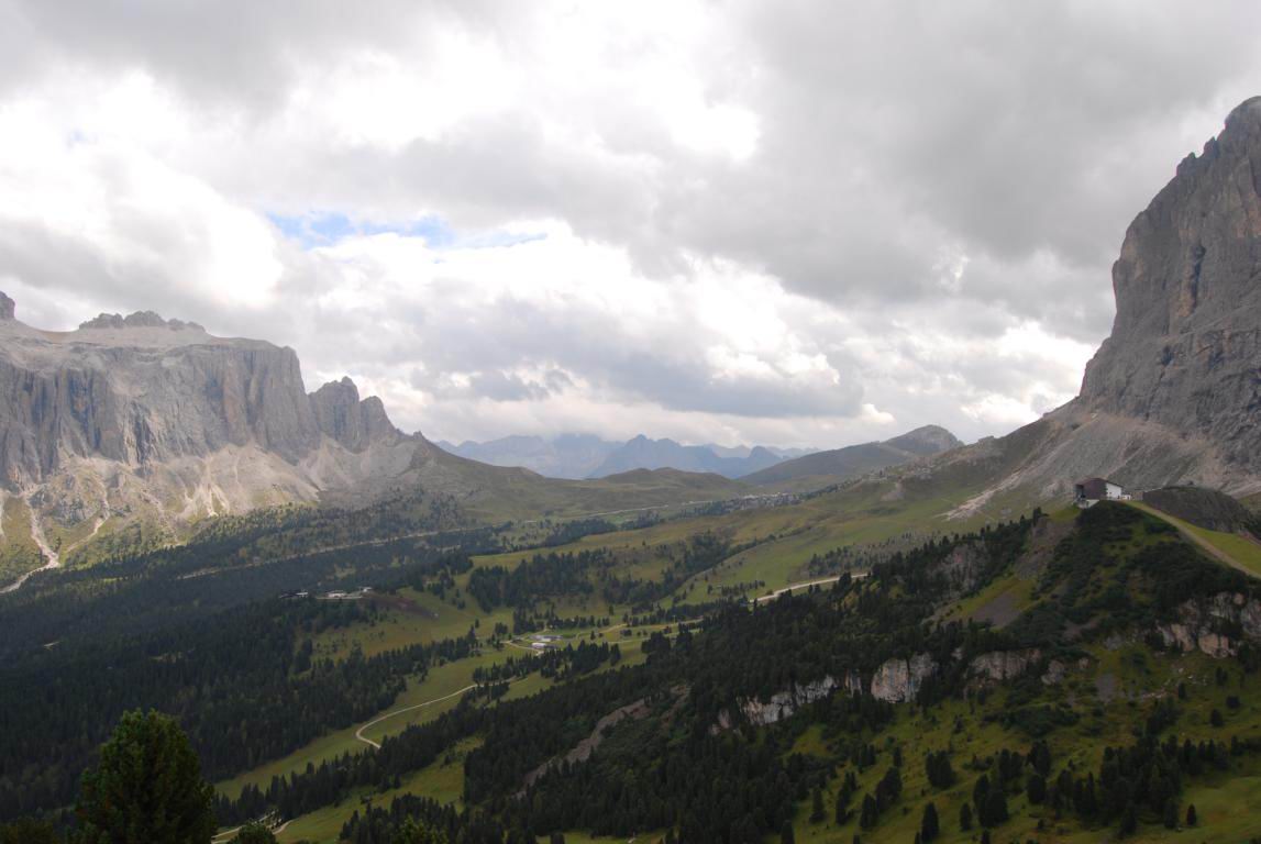der Stelvio, der Forcola bei Livigno, am Grödner Joch (Gardena), am Sella Joch und ein Wandersmann bei Knieübungen :-)