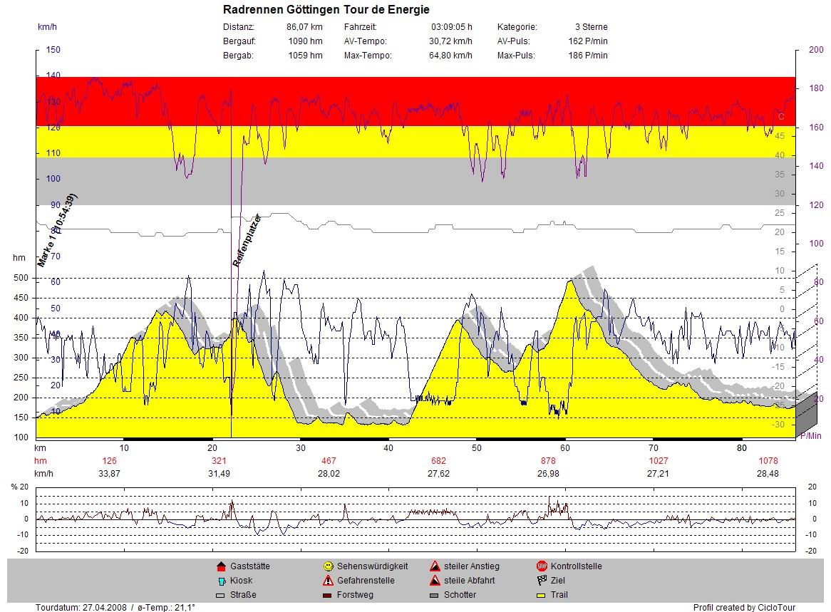 NUR, wenn ich den Platten nicht gehabt hätte, dann wäre ich mit 2:48 Std ins Ziel mit DIESER Leistung reingefahren. Ich behaupte mal, dass ich ohne den Platten mit den vorderen Fahrern in die Ebene gekommen wäre und erst am Bramwald hätte reißen lassen müssen. Da wären noch einmal 5 Minuten Vorsprung rausgekommen, denn dort sind Peletons mit bis zu 50 Mann unterwegs gewesen, die dann schön die 50km/h gerollt sind. Und da war ich halt nicht dabei. Seis drum, nächstes Jahr wieder, dann ohne Platten und mit viel viel hm in den Beinen--->und es wird noch schneller