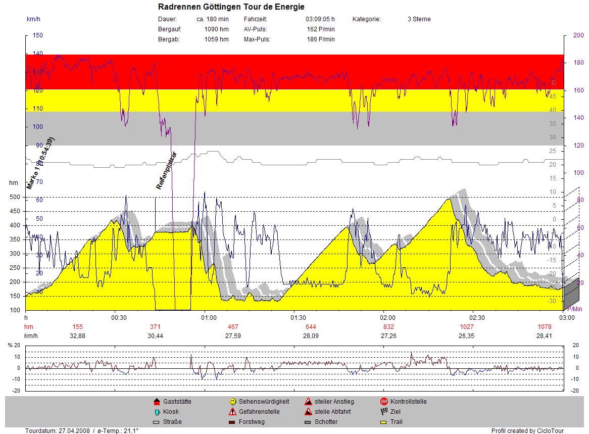 , ich war auch zufrieden mit meiner Leistung. ich bin recht zügig den 2. Berg an der Weser (Bramwald) mit 14,5 km/h die 6km 5% hochgekommen.