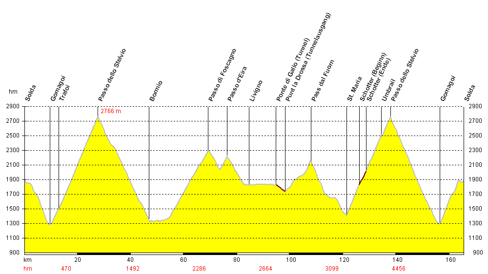 Gebirgsrenner hat geschrieben: Eine schöne Runde ist auch die von Prad via Stelvio nach Bormio und dann über Livigno, den Grenztunnel (leider darf man den nicht mehr mit dem Rad befahren, sondern muss den Shuttle-Service nutzen), den Ofenpass zurück nach Prad (ganz harte nehmen den Umbrail und fahren dann über den Stelvio heim). Das sind knapp 140 km und hm jenseits der 3tausend.