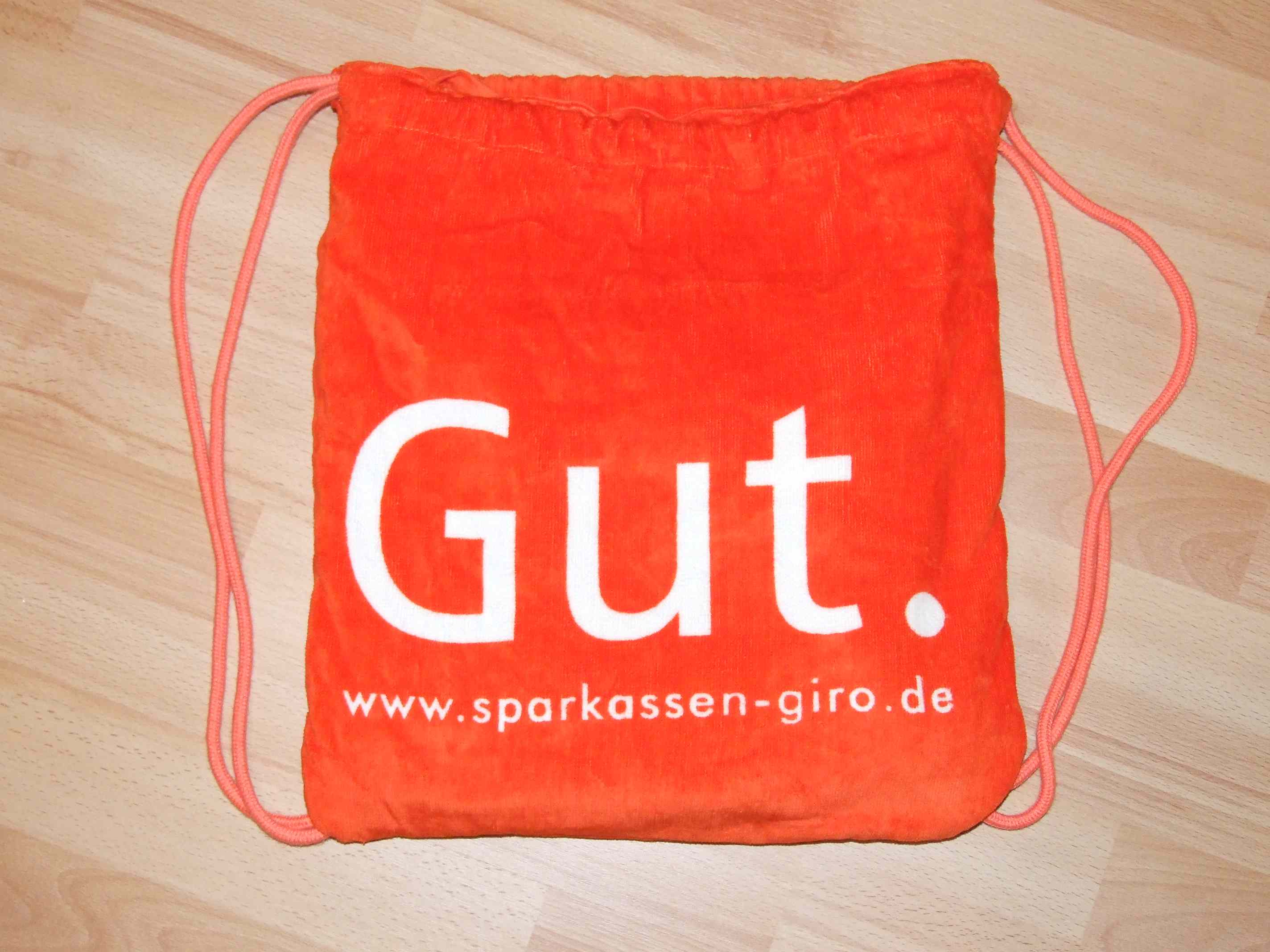 Die milde Gabe der Sponsoren war diesmal in einer gewagten Badehandtuch-Badetaschen-Kombination aus gelb-orangen Frottee verpackt.