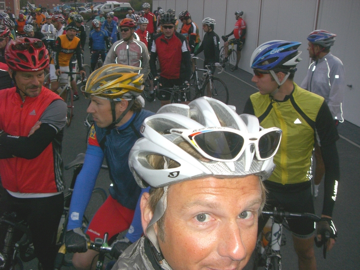180 Marathonis (für Norddeutschland eine große Anzahl) aus ganz Deutschland machten sich auf den Weg. Ich habe mich im 1. Drittel eingereiht und bin schön in der Nähe der St-Pauli-Rennradfahrer gefahren, da ich mir dachte, dass die Flachlandtreter meine Kragenweite im Marathon wären. Sie waren ein Dreiviertelstunde vor mir im Ziel.