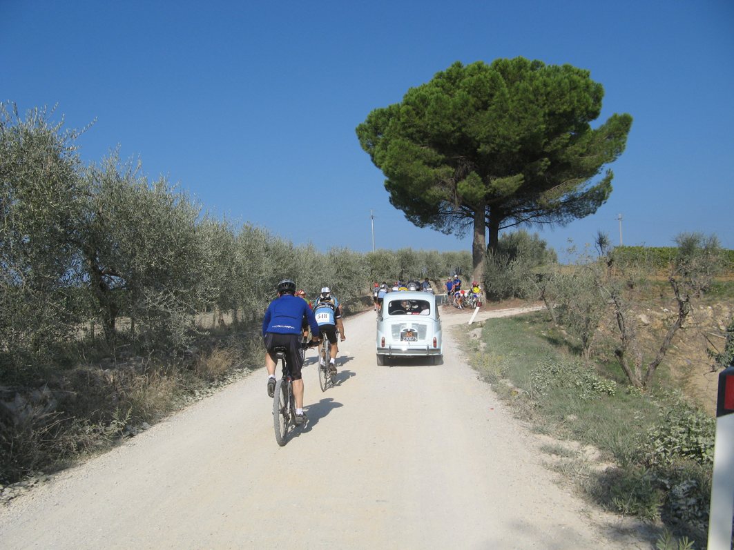 Am Sonntag, dem 4. 10. fand die diesjährige (13. Ausgabe) der Eroica statt, einer mehr oder weniger touristischen Fahrt durch die Toskana, zum Teil über die sog. „strade bianchi“, ungeteerte Kieß- und Schotterstraßen.