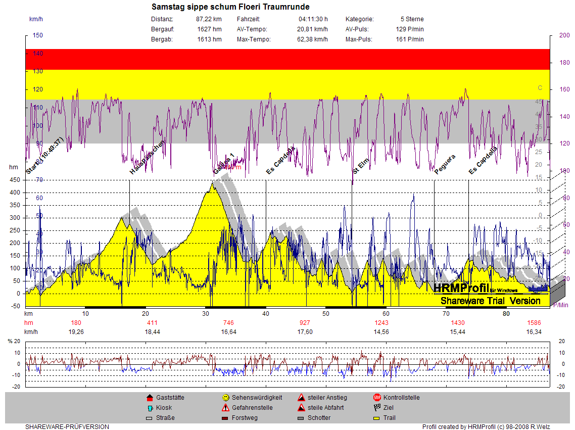 Zunächst ging es nach Palma, immer schön an der Küstenstrasse entlang. Mein Puls ging gar nicht empor, also immer schön hohe TF, damit der Körper sich akklimatisiert.