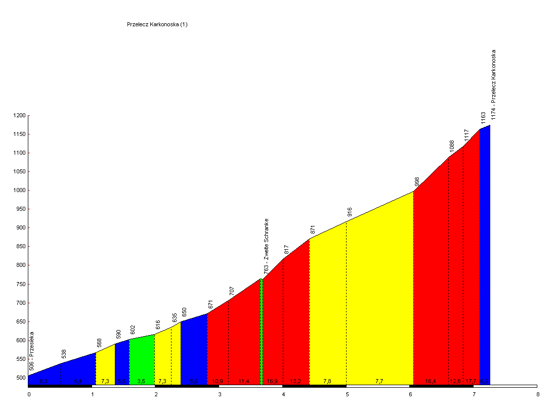 Ein Fest! Zunächst mäandert sich das Asphaltband bei 5 - 9% aus Przesieka heraus, versteckt uns dann angenehm kühl im Wald und bringt uns, ohne sich auch nur den Umweg einer einzigen Kurve zu leisten, mächtig steil nach oben. Ab der zweiten Schranke