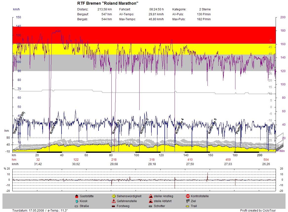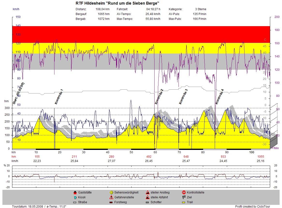 Um 2100 Uhr lag ich dann im Bett und schlief schön durch bis 0600 Uhr. Sonntag bin ich dann in Hildesheim die RTF "Rund um die Sieben Berge" mit 110km und 1100hm gefahren, aber das ist ne andere Geschichte.
