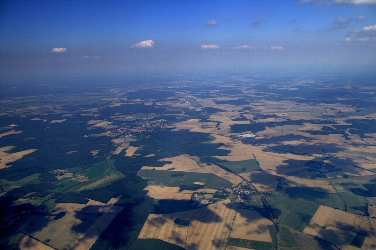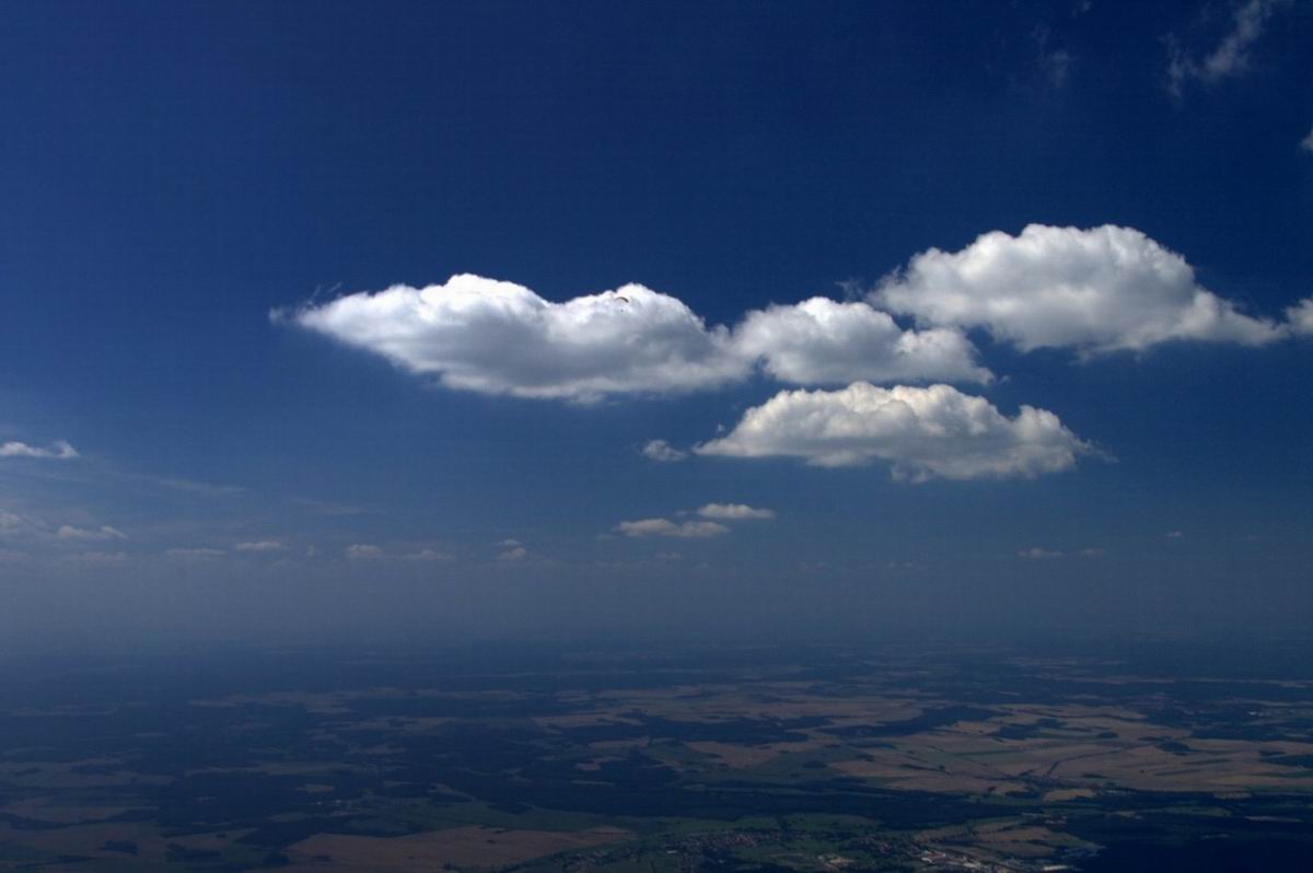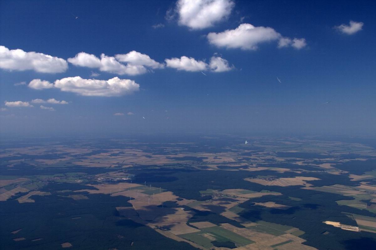 An dieser Stelle der Bericht zu einer etwas anderen "Tour" in Brandenburg. Gestartet wurde 14:22 Uhr auf dem Flugplatz in Altes Lager und die thermischen Bedingungen schienen zu Beginn alles andere als einfach zu sein. Der Ostwind blies recht stark, sodass ich zwischen Eckmannsdorf und Danna meinen Flug im Geiste bereits beendet hatte. Alles oder nichts. In 150m über Grund hielt ich auf den Dorfrand zu und hoffte, eine Ablösung zu erwischen. Piep, piep, piep, piep - YES!!! Jetzt bloß den Bart nicht wieder verlieren und vorsichtig Höhe machen. Kurz und knapp: Es war ein Kampf bis hinauf auf 2300m NN. Unter der Wolke angekommen schaute ich in Richtung Osten und was sehe ich unter mir? Aaahhh, 11 Segelflieger schiessen im Pulk auf meine Position zu. Das sieht zwar geil aus, nötigt das Nebennierenmark aber auch zur sofortigen Adrenalinausschüttung. Die Jungs (und Mädels) sind Teilnehmer der Segelflug-WM, die in diesen Tagen in Lüsse (bei Belzig) stattfindet. Nach 1:45h Flugzeit hatte ich dann genug erlebt und begann in 2000m Höhe mit meinem Landeanflug auf den Bahnhof von Belzig (16:07 Uhr).