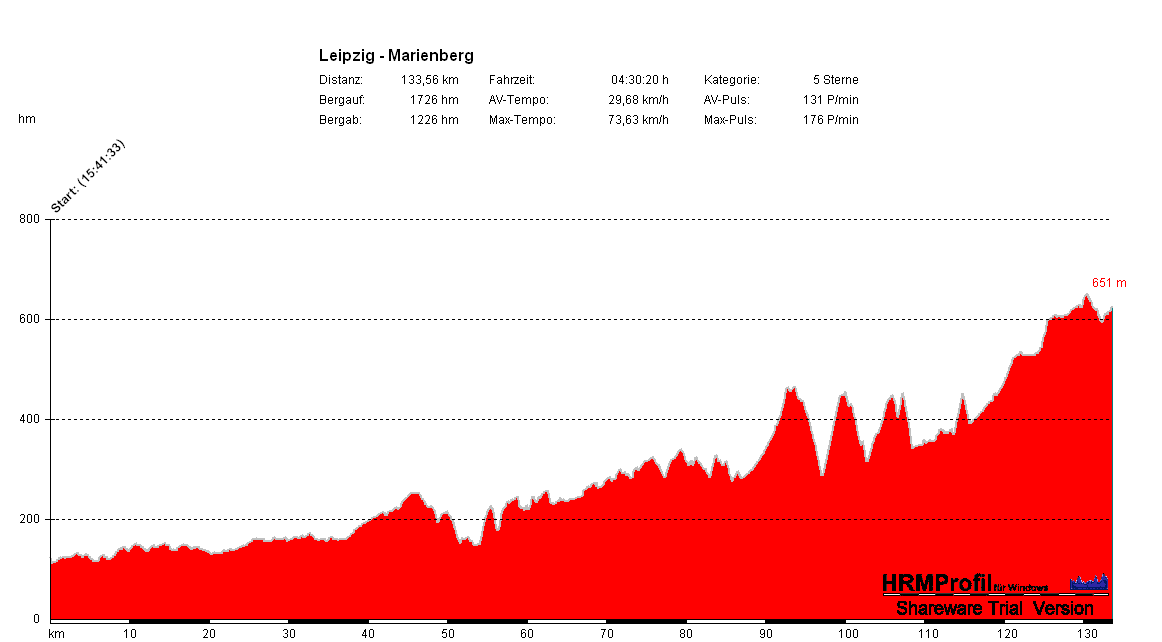 Wir fahren los und es geht auf fast bekannten wegen, nur von Stockheim nach Steinbach beantworten wir eine schon lange im im Raum stehende Frage, wo geht die Straße eigentlich hin (Stockheim Richtung Steinbach fahren wir nach Stockheim ja immer rechts), über Bad Lausick nach Rochlitz. Hier kommen wir von Ebersbach über Königsfeld nach Rochlitz rein und genießen dabei den Rückenwind und die leichte abfahrt, welche zusammen uns wohl schnell zu den versprochenen Blinsen bringen wollten. Auch die erste Steigung Richtung Seelitz wurden wir regelrecht hinauf geblasen. Die kurze Abfahrt und die darauf folgende Steigung hinauf nach Bernsdorf – kurz mal über 14% - zeigten mir aber schnell, das wird noch dauern, bis zu den Blinsen.