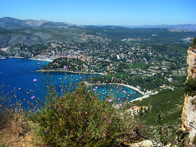 Wieder diktierte der Wetterbericht die Reiseroute, da für die Alpen in den kommenden Tagen weiterer Starkregen gemeldet war. Daher cruisten wir über Genf nach Westen ins Burgund. So fuhren wir der anrollenden Wetterfront entgegen und hatten nach deren Durchzug in der Nacht in den kommenden Tagen einen freigeputzen Himmel, besichtigten Dörfer, romanische Kirchen, das schnuckelige Beaune und genossen unser Leben. Mit Zwischenstopp in der Ardèche-Region bei Bekannten ging es dann hinunter in die Provence, wo wir eine Unterkunft in Bras, einem kleinen Nest im Hinterland der Côte d´Azur, gebucht hatten. Die Tage vergingen mit Besichtigungen, leckerem Essen, leichten Wanderungen und auch kleinen Badeeinlagen am Meer wie im Fluge. Radfahrerisch zu vermelden ist von den ersten Tagen eine genussreiche 80-km-Fahrt über die Hügel ans Meer bei La Ciotat mit Abschlußfinale über die Route des Crêtes, einer exponiert auf den Steilklippen über dem Meer verlaufenden Straße, nach Cassis. Beängstigend, wenn mit dem Rad das Schild passiert wird, welches ein 30%-Gefälle hinab gen Cassis anzeigt, zum Glück aber seine Versprechung bei weitem nicht einlöst.